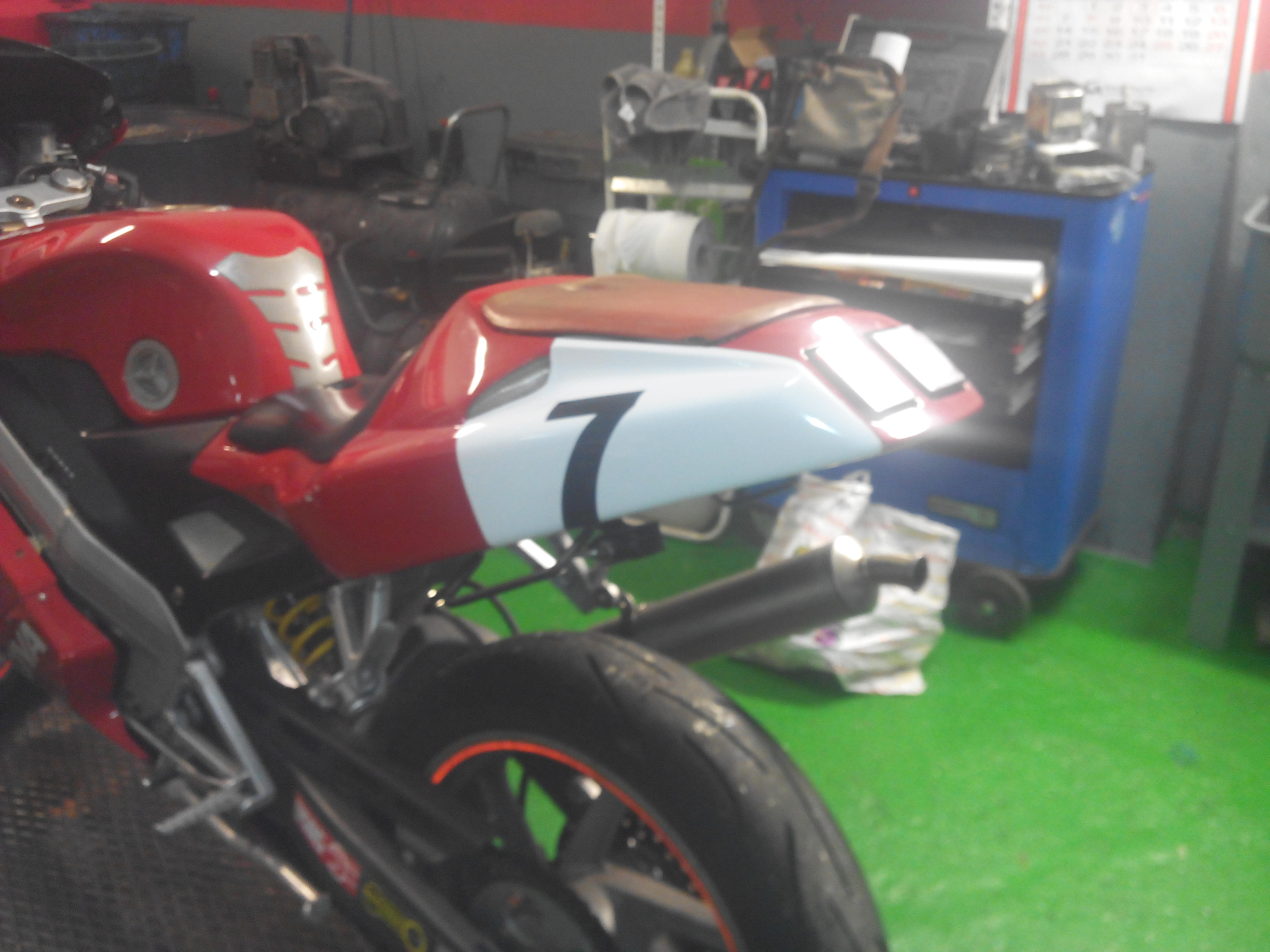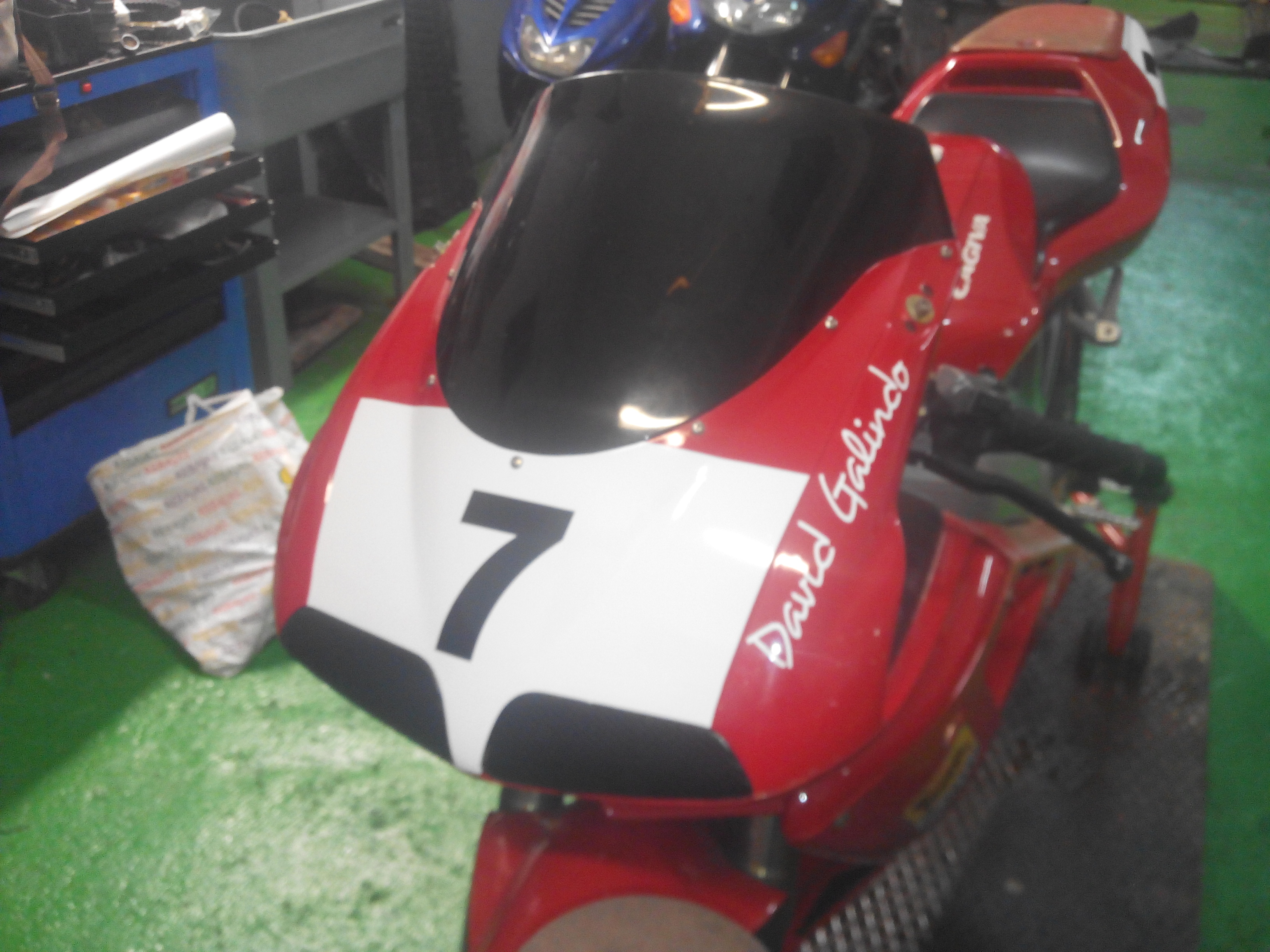 Los Reyes han traído la rotulación de la Cagiva Mito réplica de la de Eddie Lawson a Talleres Mecánicos Galindo